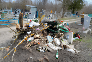 Проблема многочисленных свалок на городском кладбище возмущает азовчан уже многие годы. Территория утопает в пакетах, бутылках, старых венках, кучах бурелома в человеческий рост. В некоторых местах невозможно пройти.