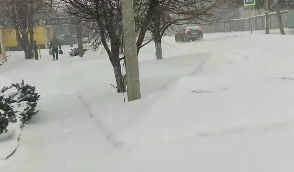 По словам жительницы города Екатерины, дороги были очищены от снега, а вот тротуары тонули в снегу.